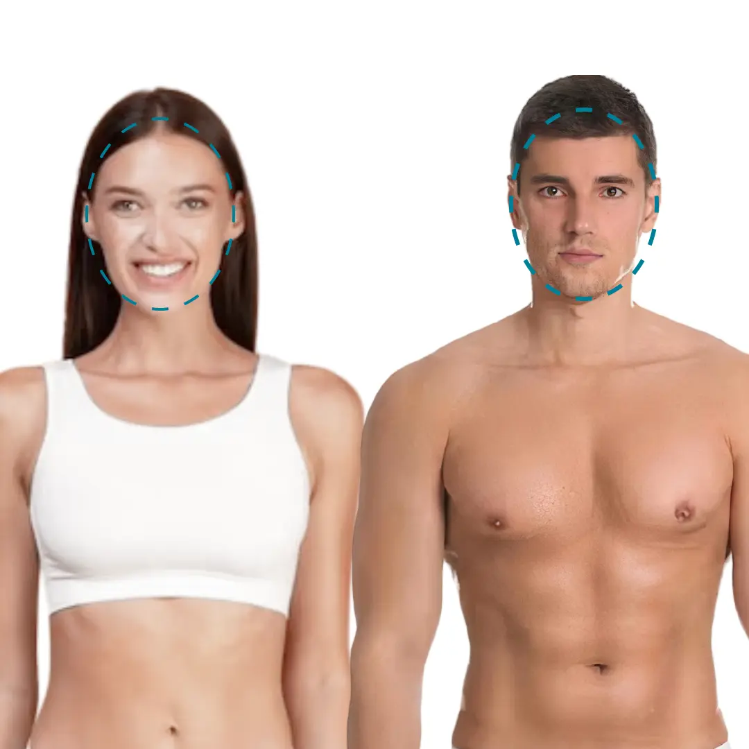 ☑️ Abarca: (Frente, Entrecejo, Bozo, Mentón, Patillas, Mejillas).